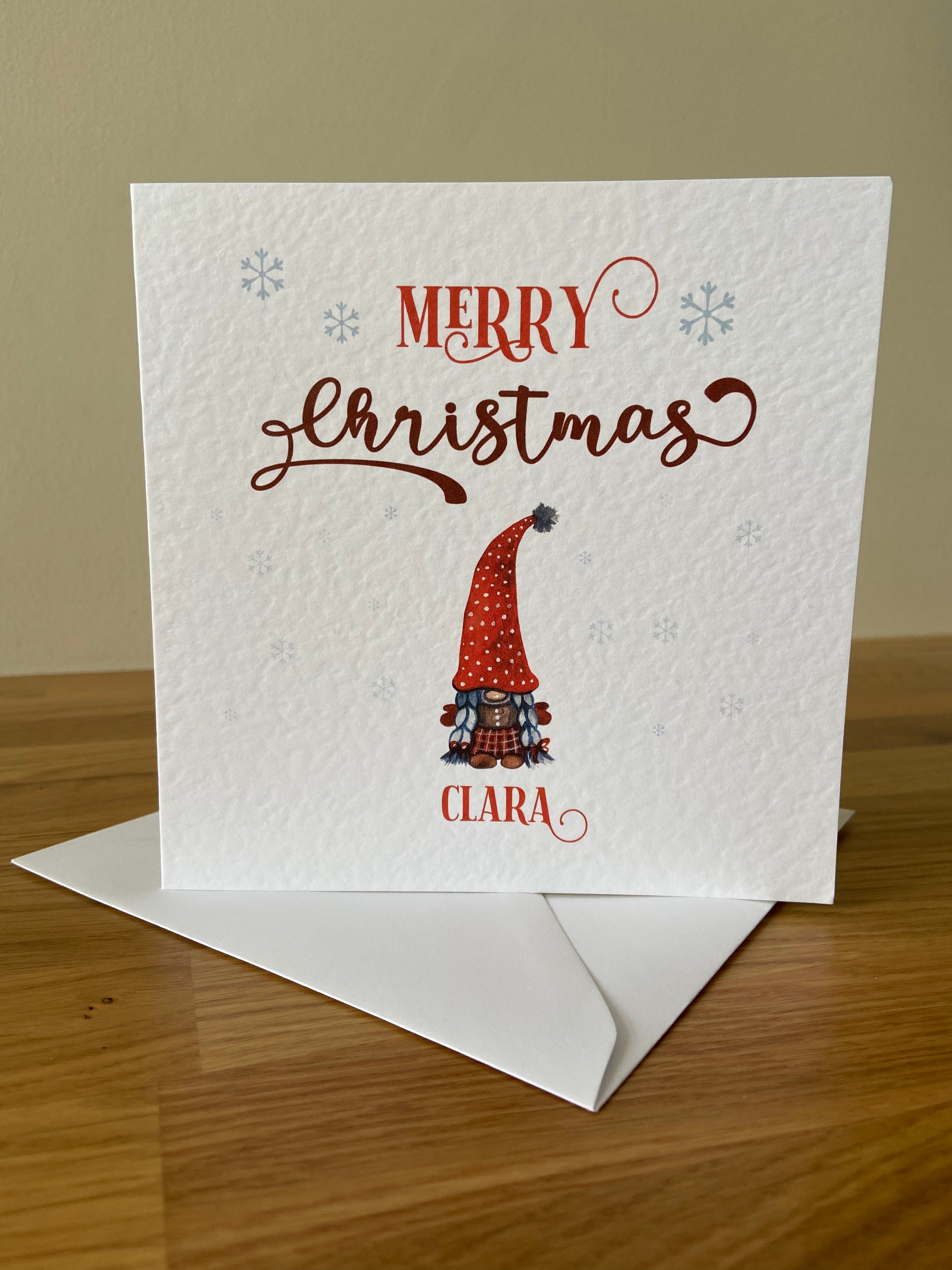 A cute Christmas card with Christmas Gonk, that can be personalised to make it extra special.