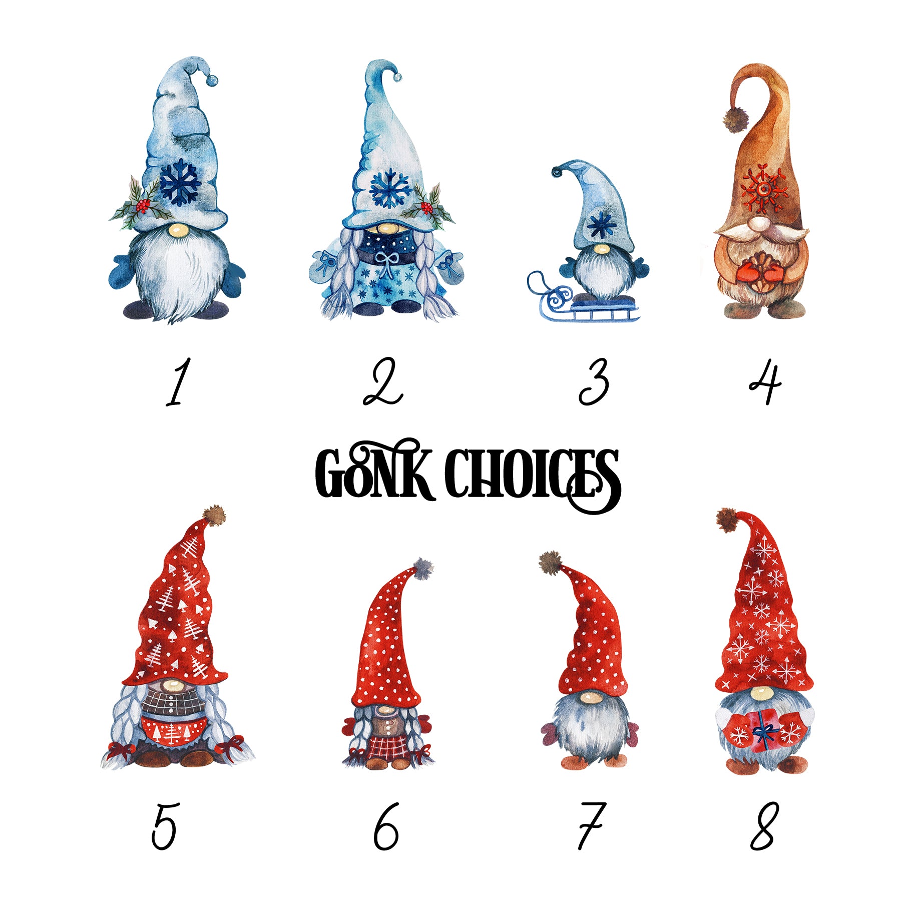 Choose from one of 8 different gonks and include the name of your choice. Write in the personalisation box the name and gonk number e.g. Rachel 5
