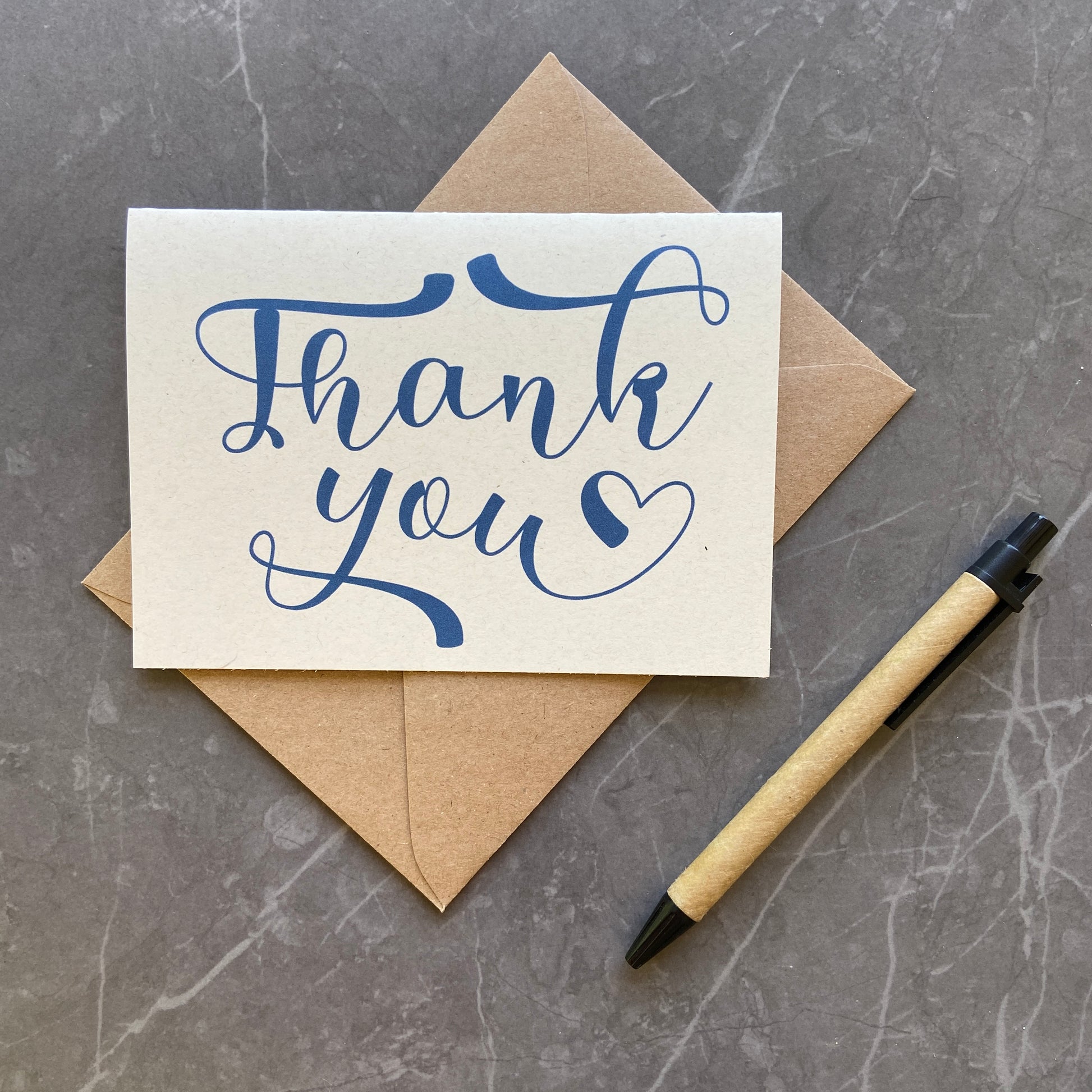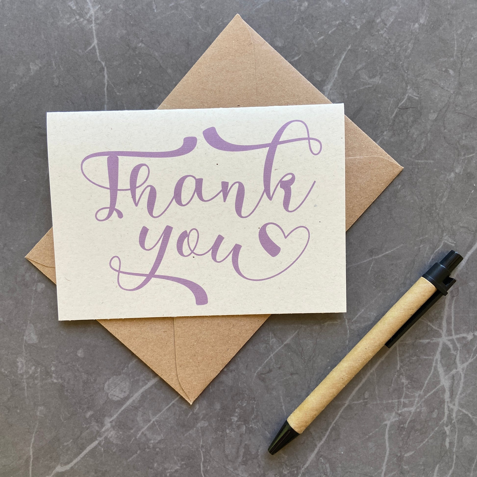 This elegant set of note cards is printed on fully recycled ivory fleck card which has a beautiful natural feel.  The contemporary script comes in a variety of bright colours.  Choose from Teal Green, Tangerine Yellow, Tanzanite Purple, Raspberry Red, Lavender, Dusky rose, Deep Ocean Blue and Pale Blue.